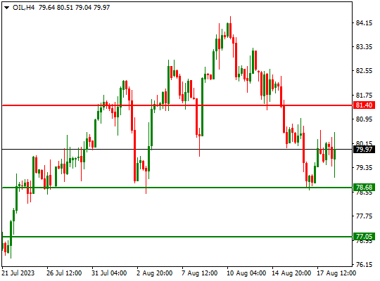 مؤشر مخزونات النفط الخام الأمريكية : يصدر هذا المؤشر أسبوعياً عادة يوم الأربعاء , هذا الأسبوع صدر يوم الآربعاء 16 أغسطس 2023 مساءاً كانت اقل من المتوقع , وكانت النتيجه سلبيا حيث هبط السعر من 80.18 الى 79.38 .