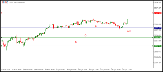 If the downward trend of the Dow Jones continues, it will look for a sell entry from the support area at $33,381. From here, the Dow Jones can be sold to target the opposite target at $32556, and if the first target is broken, we target 31817, placing a stop loss order at 34657.