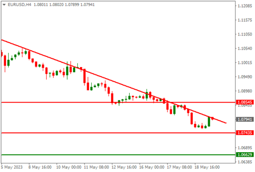 The euro is still in the downtrend channel that started from May 4 until now, as the euro opened last week at the level of 1.0852, and reached its highest level at 1.0903, and its lowest level was at 1.0759, and the closing price EURUSD Weekly Report was at the level of 1.0793.