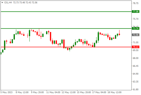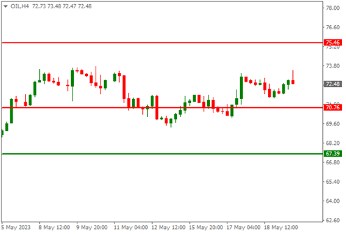 Based on the oil chart shown below, we notice that the prices are making weak movements. Therefore, we will sell from the closing point at $72.48 a barrel and consolidate the sale from the point of $70.76 a barrel. Likewise, we target $67.39 per barrel as a profit-taking area, and we will place a stop loss at $75.46 per barrel to minimize risks.